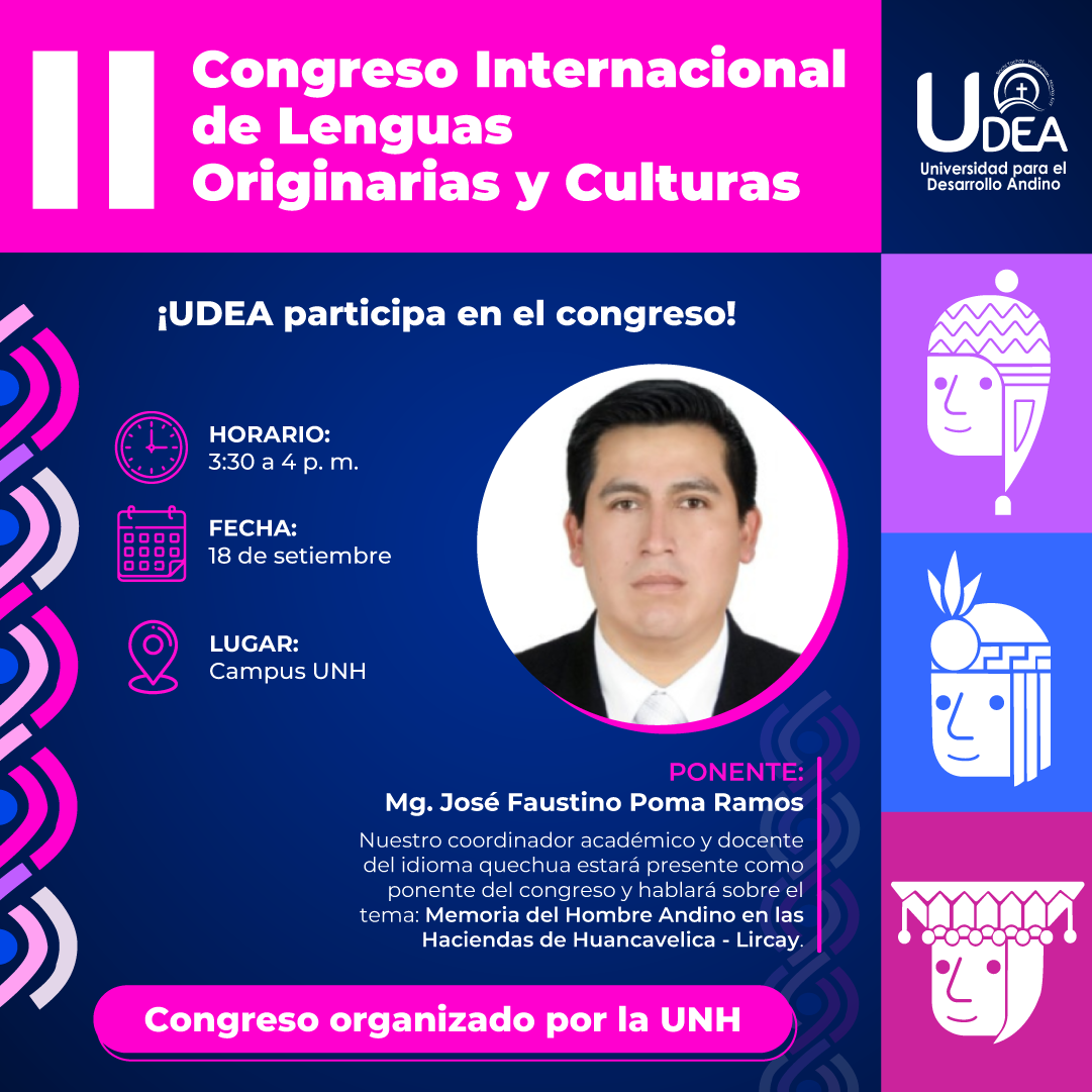 La Universidad para el Desarrollo Andino (UDEA) se enorgullece en anunciar la participación de su coordinador académico y docente del idioma quechua, Mg. José Faustino Poma Ramos, como ponente en el II Congreso Internacional de Lenguas Originarias y Culturas, que …