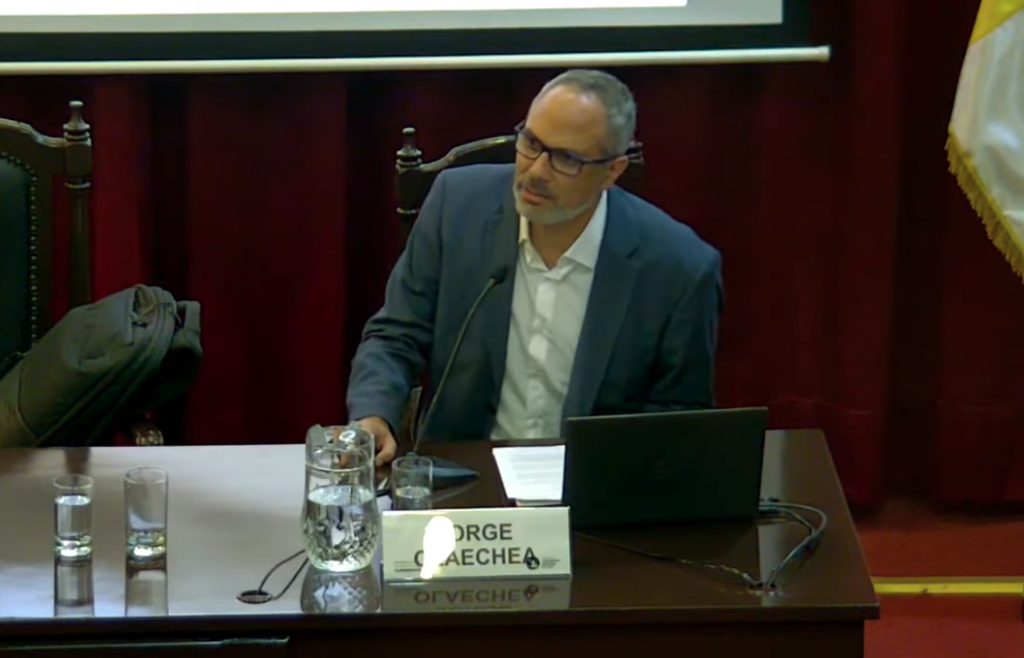 En su exposición, el Dr. Olaechea ofreció un análisis filosófico sobre el quehacer investigativo en el contexto actual. Describió un mundo académico marcado por una cultura de eficiencia y productividad, resumida en la frase «publicar o perecer». Sostuvo que este sistema transforma la búsqueda de la verdad en una mera lucha por la supervivencia laboral y económica , promoviendo lo que denominó una «prostitución de la autoría».